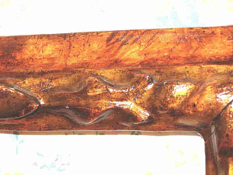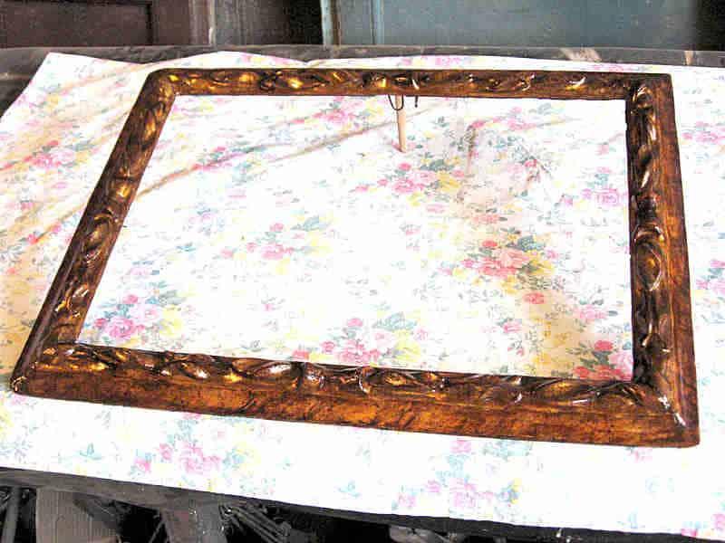 Il restauro di una importante cornice antica del ‘600 realizzata in origine a intaglio su legno scolpito (fogliami), poi modellata in pastiglia (impasto di pangesso e colla), dorata a foglia d’oro con lumeggiature sulle parti più sporgenti e decorata con una marmorizzazione (che è l’insieme delle chiazze, delle venature e striature prodotte artificialmente a imitazione del marmo e realizzate a pennello)sulla modanatura esterna. Il restauro ha previsto il rifacimento di alcune parti in legno, la gessatura delle stesse, lisciatura, doratura, il rifacimento della marmorizzazione, le patinature per antichizzare le parti rifatte e il decapaggio(pulitura attenta, lasciando intatta la patina, con sostanze mirate senza sverniciatori chimici).