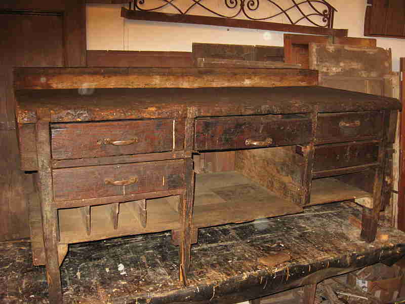 Il vecchio bancone da falegname prima del restauro