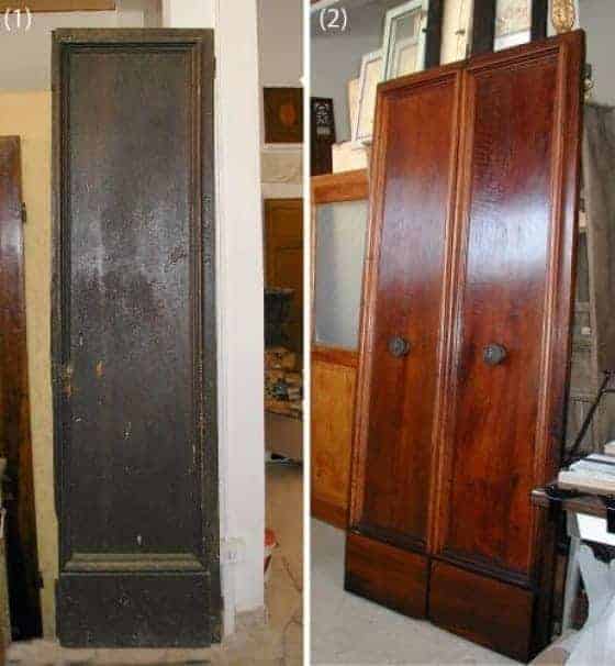 Nella foto 2 vedete la porta completa a due battenti, dopo il restauro e la finitura a sola gommalacca, cera d’api e cera carnauba. Tutti gli interventi (falegnameria, antitarlo e finitura) sono stati eseguiti solo con sostanze naturali ed atossiche. La porta è deliziosa, elegante, lineare, semplice, ma sobria e sarebbe l’ideale come porta di una cucina che da su una sala.