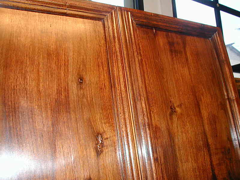 Questo è il rivestimento in noce nazionale antico realizzato ex novo. Completerà un portone blindato esterno con apertura a spingere verso l’interno. Stilisticamente il portone si rifà al tipico portone bolognese Salvator Rosa(vedi questo antico e originale). In più per essere usato come rivestimento di un portone blindato ha precise caratteristiche. Calibratura dello spessore dei pannelli e tagli opportuni sui fianchi per il relativo fissaggio.