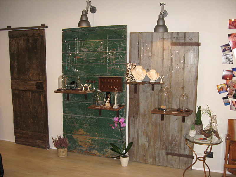 Due portoni vecchi ed una porta vecchia scorrevole arredano il negozio di gioielli