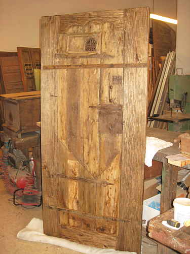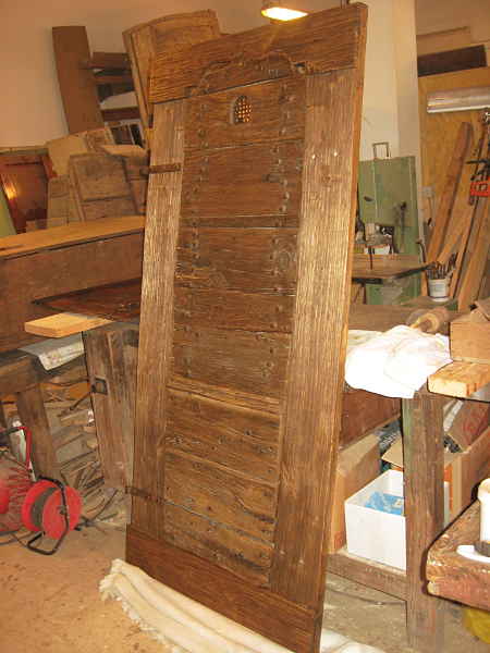 Alcuni mi hanno chiesto, ma non ne ha un’altra uguale? No, unico era ed è il portone e unica era ed è la porticina pedonale. Ma un’idea però mi è venuta! Riuso creativo! Dai due battenti del portone antico molto grandi, potrei ricavare altre porte sezionandolo. Non saranno nate come porte, ma avranno la stessa materia, lo stesso supporto ligneo, lo stesso consumo, la stessa età e patina e riutilizzeremmo creativamente i due battenti in modo prestigioso! Porte antiche da porzioni di un portone antico? Sì un’idea prestigiosa.