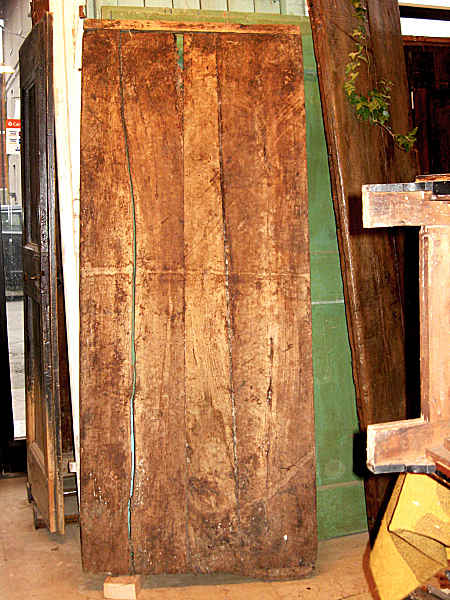 Non è solo una porta, è una vestigia, l’indizio materiale di quanto sia accaduto in precedenza. Era una porta in noce, poi è diventata piano per impastare, oggi di nuovo è tornata a essere una porta antica. Certo dopo opportuni interventi come l’aggiunta delle piane e di un saliscendi. Una rievocazione nostalgica e rispettosa del passato che ha mantenuto la sua identità nell’attimo presente. Misure 70,5 x 203. Venduta a Fiorella che l’ha montata come porta scorrevole del Suo bagno.