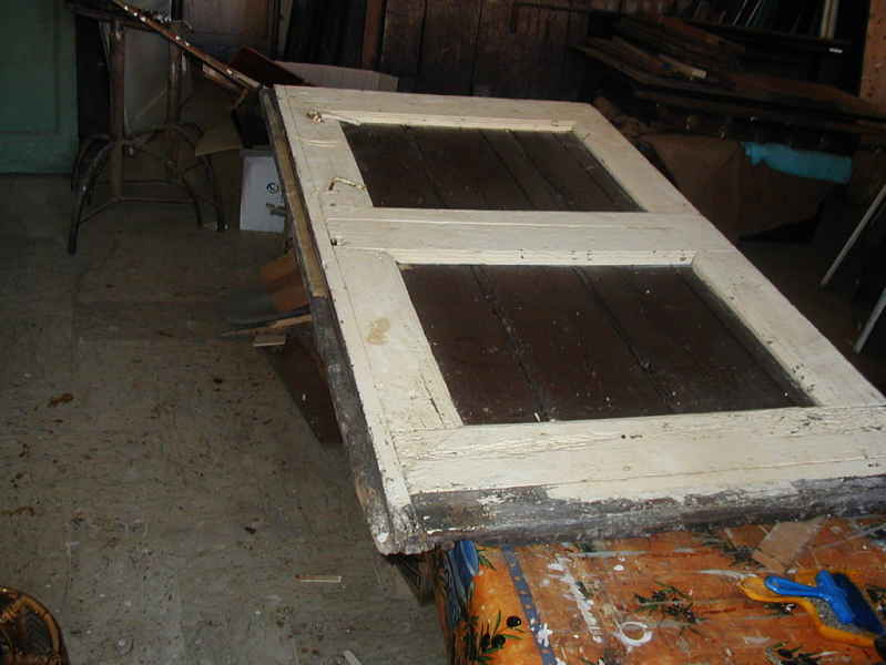 Una vecchissima e davvero malridotta povera porta di una casa di campagna. Di quelle così dette a tagliere, in castagno, con tante mani di smalti e vernici colorate che la rendevano irriconoscibile e senza apparente valore. Dopo un’attenta pulizia e un decapaggio(rimozione di verniciature pregresse e sporco) senza l’uso di sostanze svernicianti ne solventi chimici, è stata sottoposta a un trattamento antitarlo atossico e sono stati realizzati tutti gli svariati interventi di falegnameria. La finitura è stata realizzata con prodotti professionali vernicianti ad acqua senza solventi.
