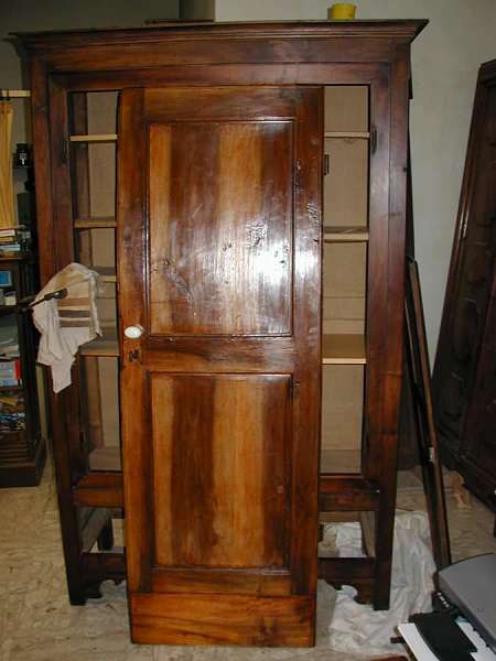 Salvando la patina elemento fondamentale di un oggetto antico, sono intervenuto pulendo la stessa patina senza rimuoverla. Anche alcuni interventi di falegnameria sono stati eseguiti alla luce di questa logica. Per i materiali solo gommalacca e cera d’api vergine senza solventi tossici.