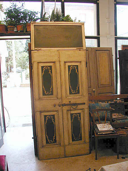 - Cercate una porta laccata a due battenti con sopraluce, questo è un portoncino antico laccato a due battenti con sopraluce in vendita.