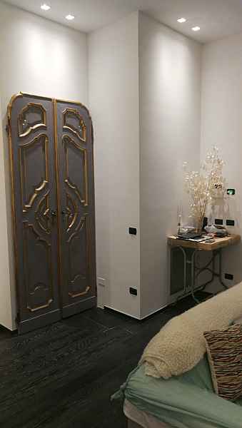 La trasformazione della porta antica laccata in una porta che deve osare; col grigio, il colore neutro perfetto, deve rompere con la tradizione e le abitudini visive, spezzare l'uniformità richiamando un tono quasi metallico rendendo l'interno un po' più moderno quasi industrial.