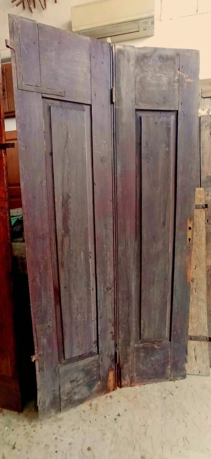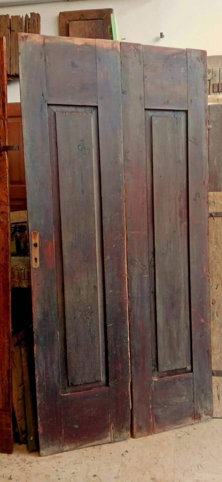 - Altro impiego che Vi consiglio decisamente, perché molto arredativo ed esclusivo, potrebbe essere quello che vede questa porta antica a libro come porta antica che chiude una cabina armadio con apertura a tirare, o come chiusura di armadio in camera da letto, o nicchia nel muro.