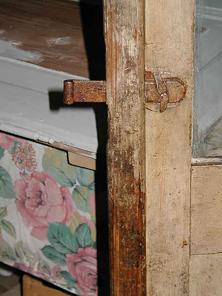 Questa porta è stata restaurata per essere usata come porta che chiude un armadio realizzato a misura della porta stessa.