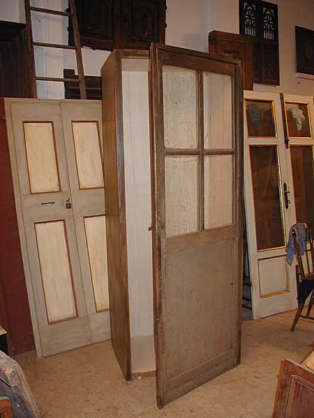 Questa porta è stata restaurata per essere usata come porta che chiude un armadio realizzato a misura della porta stessa.