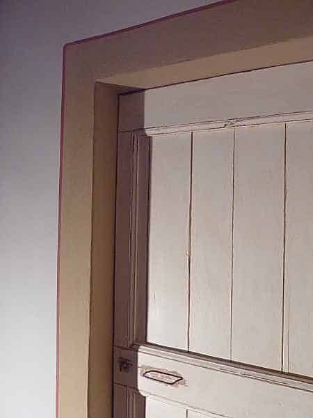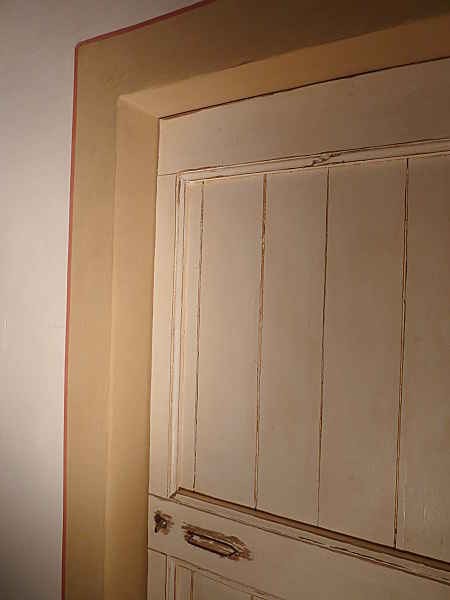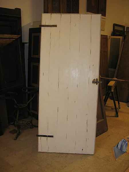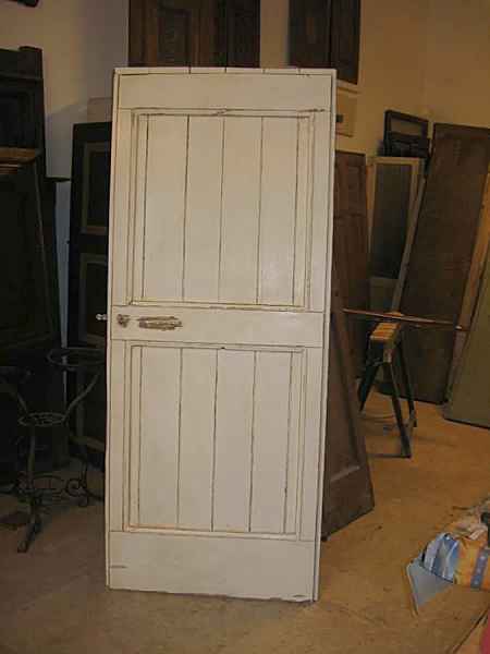 Vecchia porta cosiddetta a “tagliere” tipica delle vecchie case di campagna restaurata e finita in Shabby Chic. Colore ocra gialla chiara tendente al color avorio. Prima della shabbatura la porta vecchia a tagliere è stata carteggiata finemente a mano, ha subito un trattamento antitarlo atossico e laccata a mano solo a pennello.