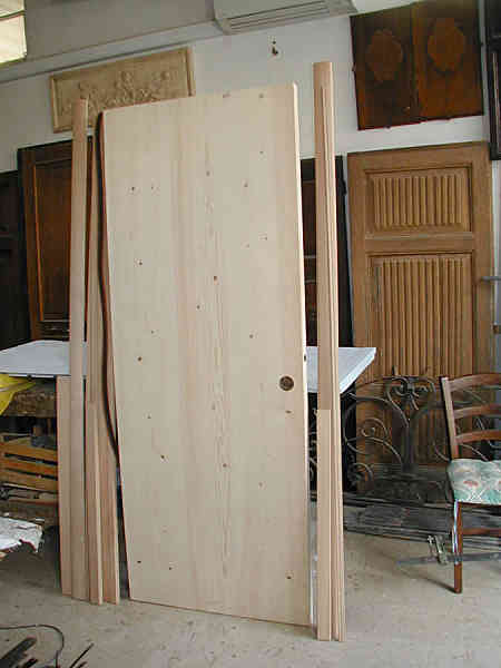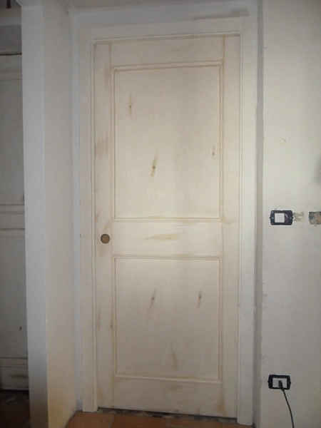 Una porta di attuale esecuzione in abete. Costruita come le antiche porte a “tagliere”, quelle tipiche delle case vecchie di campagna che sin dal ‘ 600 erano strutturalmente fatte così.