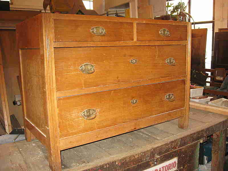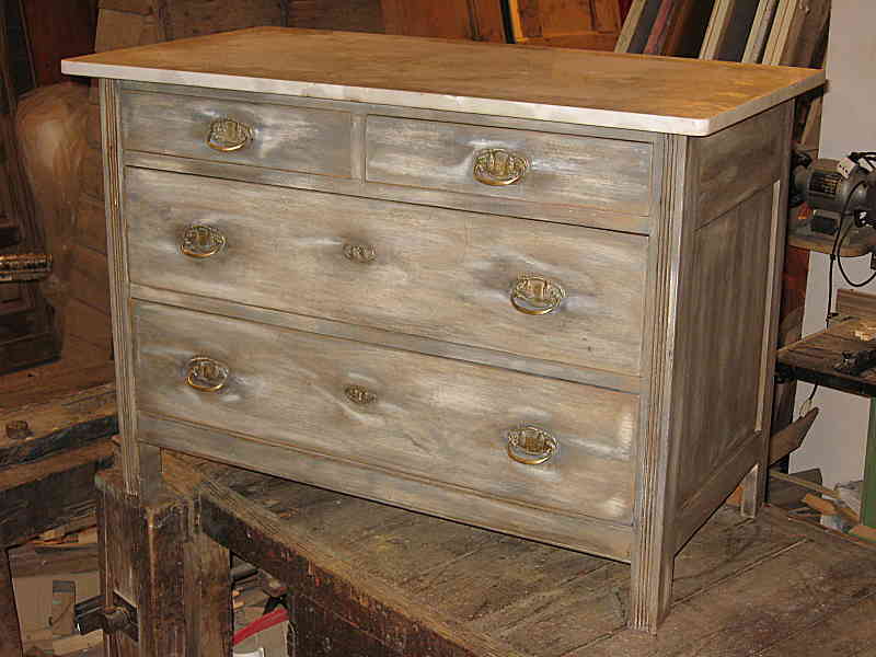 Un antico comò (cassettone antico) a quattro cassetti con il piano in marmo, ancora quello originale. Chiara ha voluto farmelo trasformare in un’altra cosa. Così com’era infatti risultava bruttino, per di più era molto scuro e difficilmente adattabile con il Suo arredamento moderno. Al contrario, con altro look, poteva diventare moderno, più piacevole e di tendenza. Da cassettone antico questo è diventato un mobile da bagno che sosterrà un lavabo da appoggio.
