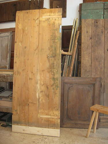 Una vecchia porta in abete. Dopo il trattamento antitarlo atossico, la falegnameria e l’allungamento, sarà trasformata in shabby chic naturale di colore azzurro chiaro. Sarà collocata in un bagno di tendenza contemporaneo di color blu pastello. Da notare come nelle zone invecchiate e consumate, sotto all’azzurro chiaro, appare in modo sfumato il blu oltre al colore del legno. Il montaggio e l’uso della porta in shabby chic come scorrevole raso muro è realizzato col mio kit. Lo shabby consente sempre di appagare quella voglia di trasformazioni e cambiamenti, ma senza impoverire, anzi nonostante il colore chiaro sembri quasi neutro, porte e mobili trasformati in shabby acquistano carattere.