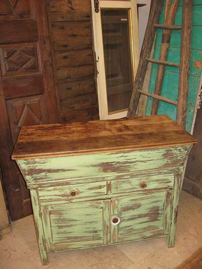 La mia cliente la vuole rivoluzionata in shabby chic naturale. Ha dapprima pensato e valutato il colore, in quanto per la Loro casina a Riccò Le sto trasformando anche altri mobili in shabby chic. Era indecisa tra bianco assoluto e avorio. Tra i due le consigliai il colore avorio poichè la casina presenterà molte pareti in sasso di fiume e mattoni e il color avorio è più caldo, ingentilisce e dona maggiore eleganza attenuando il senso di rustico. Inoltre consente l’utilizzo e l’adattamento del mobile in vani diversi, cosa che il colore bianco assoluto non consente sempre. Poi invece Barbara ha deciso per un verde molto chiaro e tanto simile al verde salvia. Maniglie a pomolo rigorosamente antiche in vetro. Prima una attenta pulizia e disinfezione, un trattamento antitarlo atossico e la falegnameria con tanti piccoli interventi di rifacimento parti in legno rotte, ammalorate o mancanti. Fessure chiuse con il legno e incollaggi di parti staccate, oltre alla rimozione di cattivi odori.