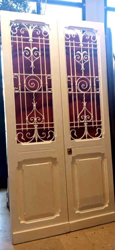 La signora Lina e Suo marito di Milano, mi hanno portato questo bel portoncino a giorno da restaurare. E’ in larice. Molto belle le inferriatine realizzate in ferro battuto senza saldature, ma solo con fascette e chiodature. E’ stato esposto anche all’acqua e pertanto le verniciature pregresse si sono gonfiate e verranno rimosse, ma senza sverniciatori chimici. Trattamento antitarlo ed anti acaro atossico. Provvederò alla rimozione e sostituzione dello stucco mastice a base di olio di lino e creta che sigilla i vetri, con cornicette in legno estraibili. Sarà laccato nel colore avorio chiarissimo e successivamente shabbato. Il bianco avorio è una tonalità di bianco particolarmente calda. E’ vicina al bianco sporco, realizzata aggiungendo al bianco una punta di ocra, giallo o terra di Siena, variabile in base alla tonalità di bianco avorio che si vuole ottenere. La shabbatura prevederà uno shabby chic elegante e leggero poco evidente ad imitare il consumo naturale. Quello che la natura attuerebbe col tempo, il consumo, il freddo ed il caldo. Sarà ricollocato nella casa da Loro ristrutturata a Genova realizzando la splendida accoppiata shabby e mare.