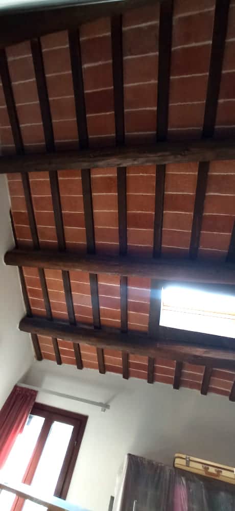 Alcuni anni fà Daniela consulente del lavoro di Imola, mi aveva scritto e chiesto un preventivo per sbiancare ad effetto shabby le travi ed i travetti del Suo bell’appartamento. Riteneva giustamente che fosse un po’ buio, non luminoso e la sbiancatura risolvesse ampiamente questo problema. A suo tempo mi aveva inviato con grande attenzione persino anche le foto, non solo dei soffitti, ma anche dei Suoi splendidi complementi d’arredo. Bei dipinti e sculture moderne di artisti d’arte contemporanea che erano collocati nell’appartamento per arredarlo. Ultimamente dato il Suo essere in ferie ha deciso per il mio intervento. Anche se recandomi a casa Sua abbiamo optato per un cambiamento. Non più effetto shabby, ma effetto coprente. Una laccatura e non più bianco assoluto, ma un bianco tendente all’avorio. Pertanto i travi e travetti, in origine colorati con impregnate scuro, venivano trasformati in bianco in contrasto con le tavelle in cotto. Il Suo bell’appartamento è costituito da una zona giorno e bagno e da un soppalco, o mansarda, nel quale è sviluppata la Sua zona notte. Tutti ambienti illuminati da finestre normali e sopratutto da finestre per tetti spioventi. Queste ultime accessoriate da tende e tapparelle a chiusura elettrica. Dapprima attenta pulitura dei travi e dei travetti con sostanza naturale e relativa attesa dell’asciugatura. Poi, ho a pennello, in due mani, coperto con idropittura naturale ed ecologica travi e travetti. Le stanze si sono immediatamente trasformate in spazi più ampi e luminosi. Questa trasformazione è avvenuta grazie al potere del “bianco”. O dell’avorio se preferite…Un colore che ha trasmesso al contesto pulizia, semplicità, spazialità ed eleganza. Il cambiamento significativo stà nel passaggio da appartamento rustico ad appartamento elegante. Sono evidenti tutte le mancanze del legno dei travi e travetti come le venature del legno consumato, ma sono bianche! Daniela è rimasta molto contenta del Suo…nuovo appartamento.