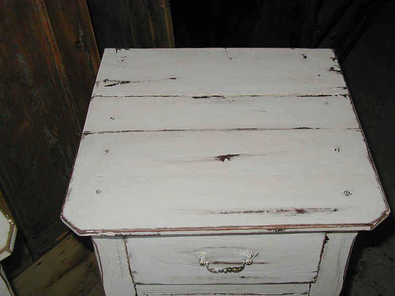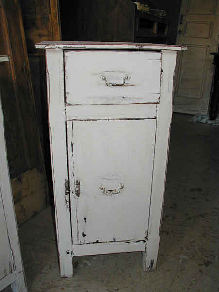 Sono quei comodini economici che una volta venivano realizzati con i pezzi di legno che si ritrovavano. Legni diversi per le probabili condizioni di povertà del momento. Consigliai il cliente di non spendere molto per fare un restauro classico e completo, non né valeva la pena. Proposi lo Shabby Chic naturale e garantii che sarebbero diventati carini spendendo poco. Mi sembra di esserci riuscito.