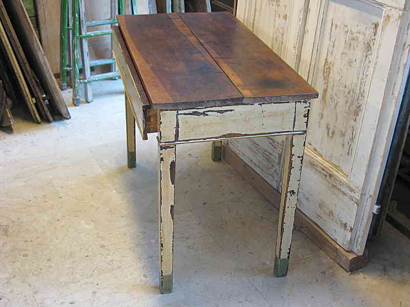 Questo è un tavolinetto della fine del ‘ 700, primi ‘ 800, in noce nazionale(e parzialmente laccato), una bellissima noce nazionale peraltro. Il piano è stato mantenuto legno a vista. Pulito accuratamente e finito a cera. Tutto il resto del tavolinetto, le gambe e il cassetto, sono state finemente shabbate come ha richiesto il cliente.